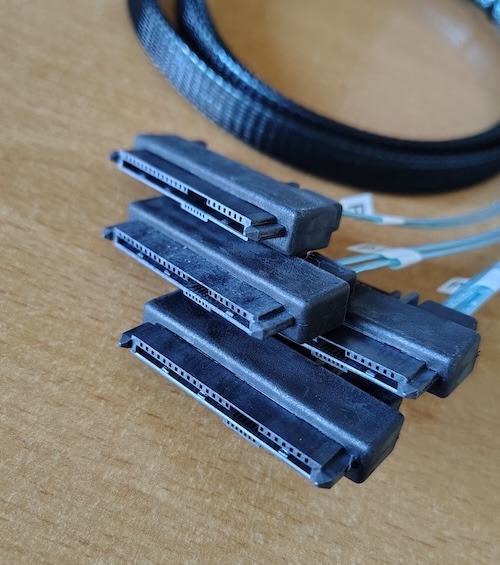 🔌 Kábel: 100cm-es miniSAS (SFF-8087) → 4db SAS vagy SATA (SFF-8482) végekkel HDD/SSD-hez a HP H240 kártyához, ugyanez 50cm-ben a IBM/Lenovo kártyához.