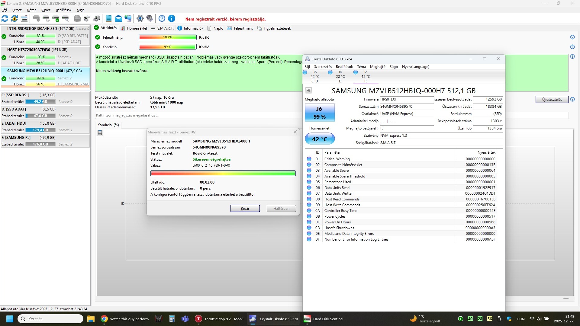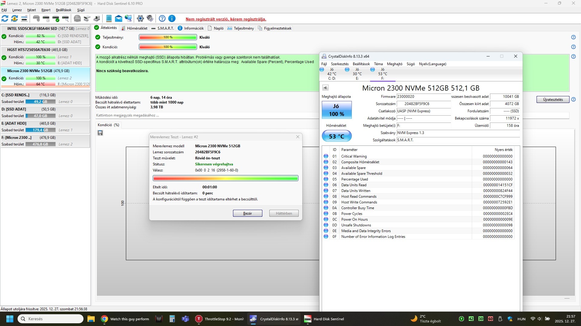 Eladó a címben is említett SAMSUNG PM981a 512GB és Micron 2300 512GB M.2 NVMe SSD.