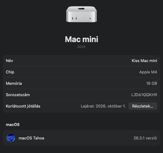Jegelve – Mac Mini M4 16 / 256GB garanciával