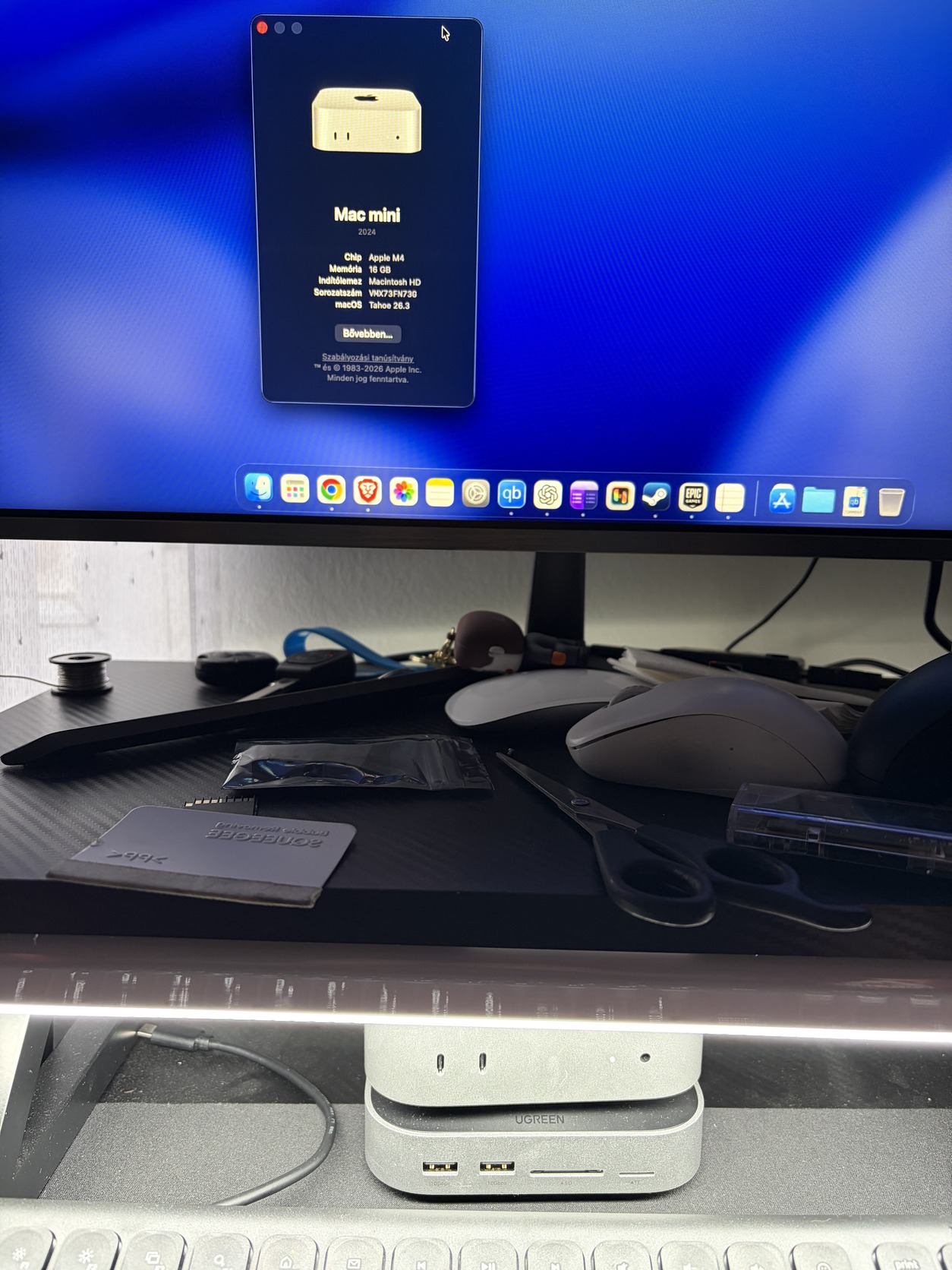 Mac mini m4 euronicsban vásárolt fél éves orico dokkolóval amiben van m.2 nvme ssd hely sd micro sd olvaso 3x type-c 5x usb-a (nekem jelenleg 2tb nvme van benne eladó az is +60000 ft)