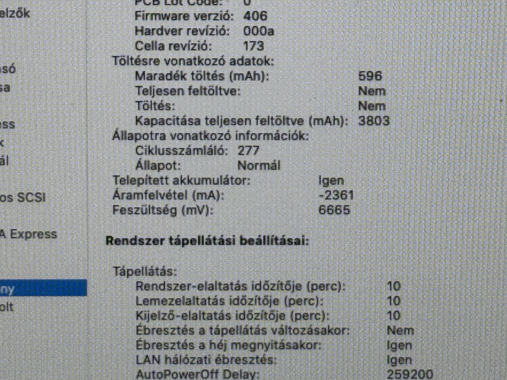 karakterek matricázva vannak. Az akkumulátor