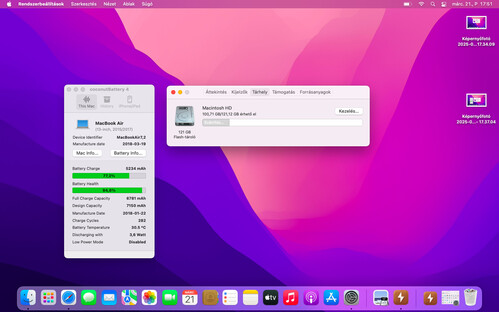 - Akkumulátor: 94,8% (ahogy képen is látható, nem volt cserélve)