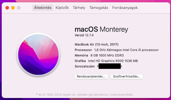 Eladó 2017-es MacBook Air 13" (német billentyűzettel)