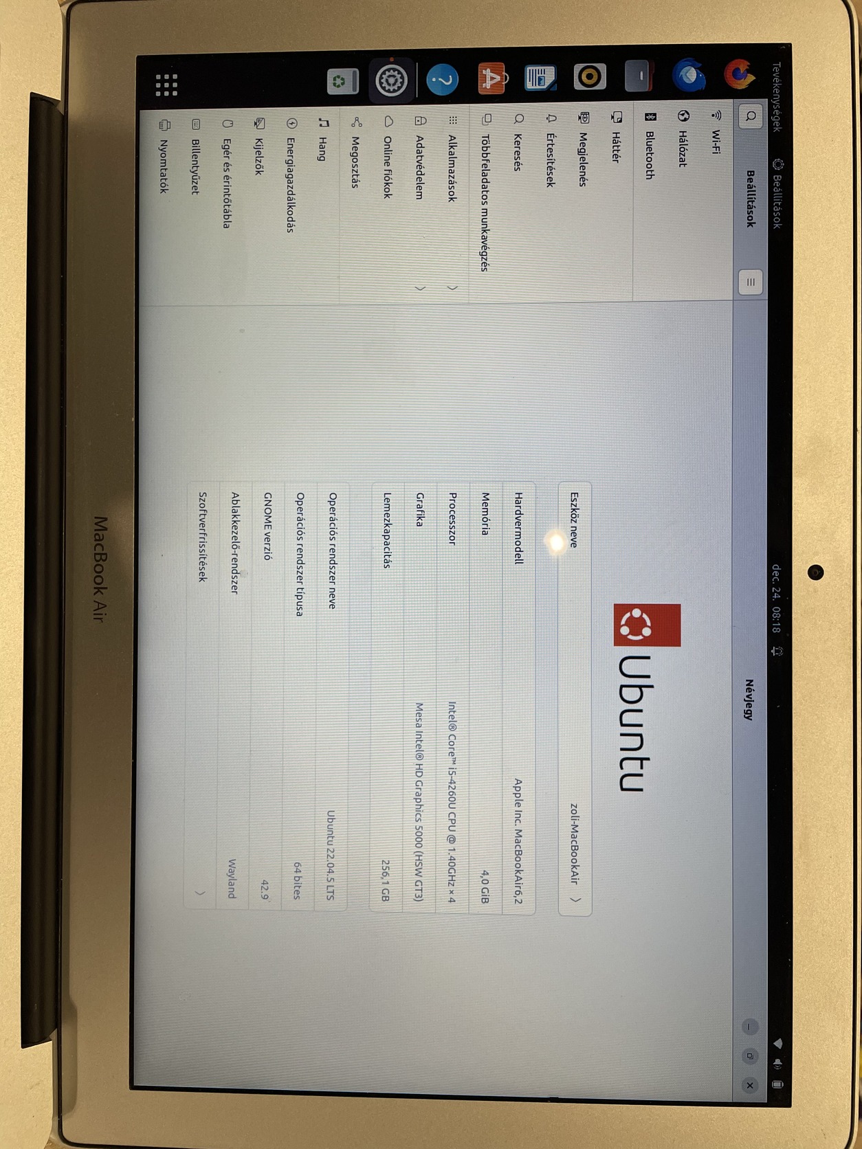 I5 4260U / 4GiB Ram / 256 GB SSD / magyar billentyűzet