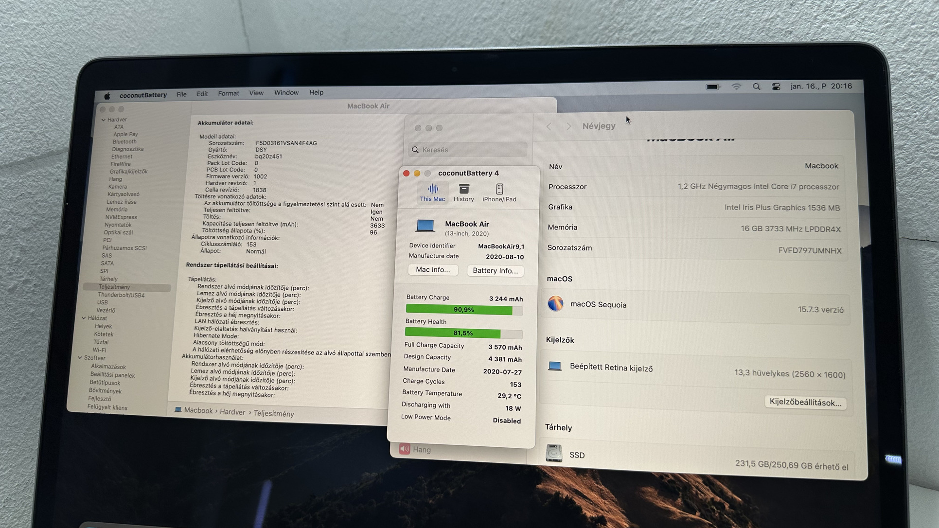 153 ciklus 81%-os akku, tökéletes kapacitással bír.