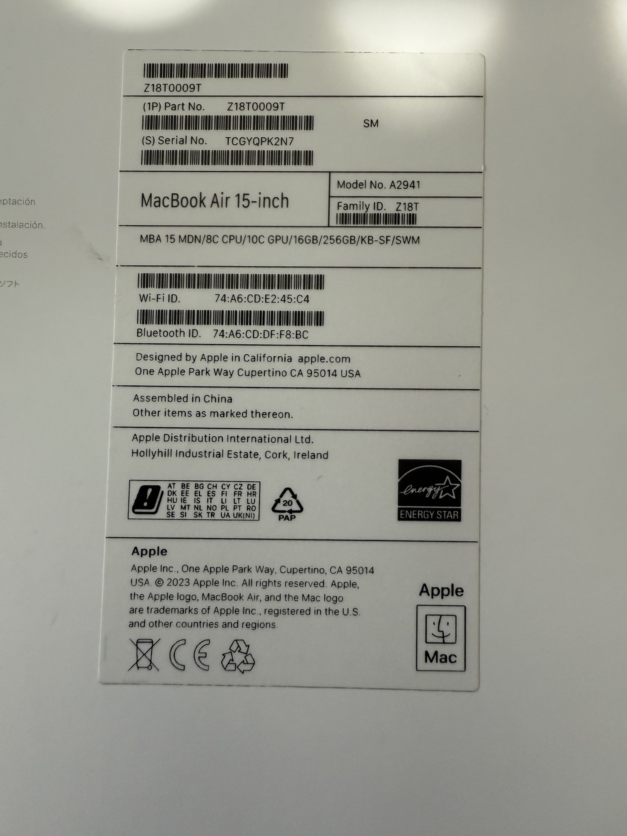 Macbook air 15 M2 16gb 256ssd