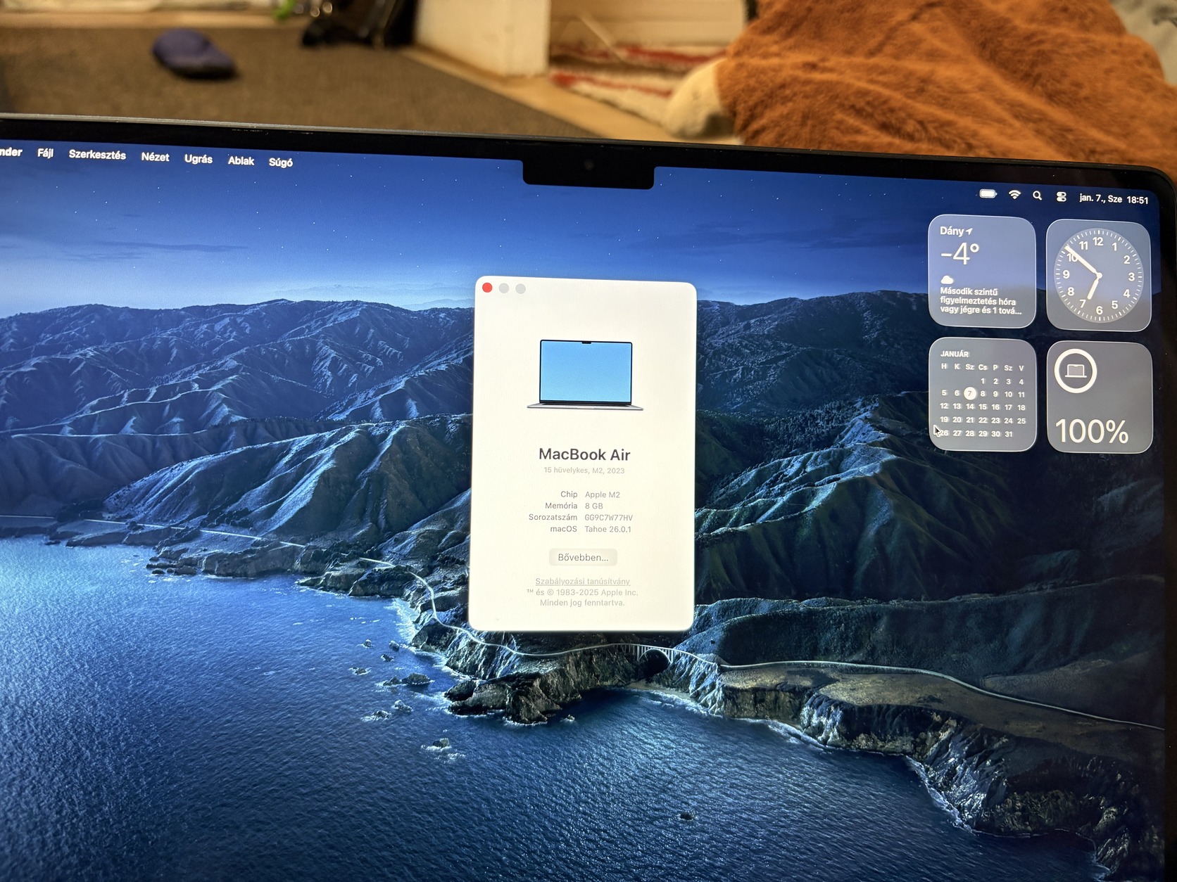 Kiváló állaptban levő Macbook Air 15” M2 8Gb 256Gb gépem eladó. Akkumulátor állapota 91%, garanciális 2027.01.18-ig.