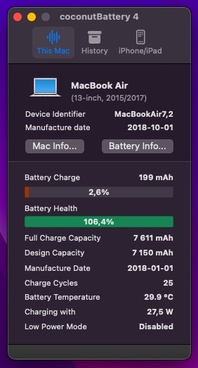 Macbook Air 2017 100% akku