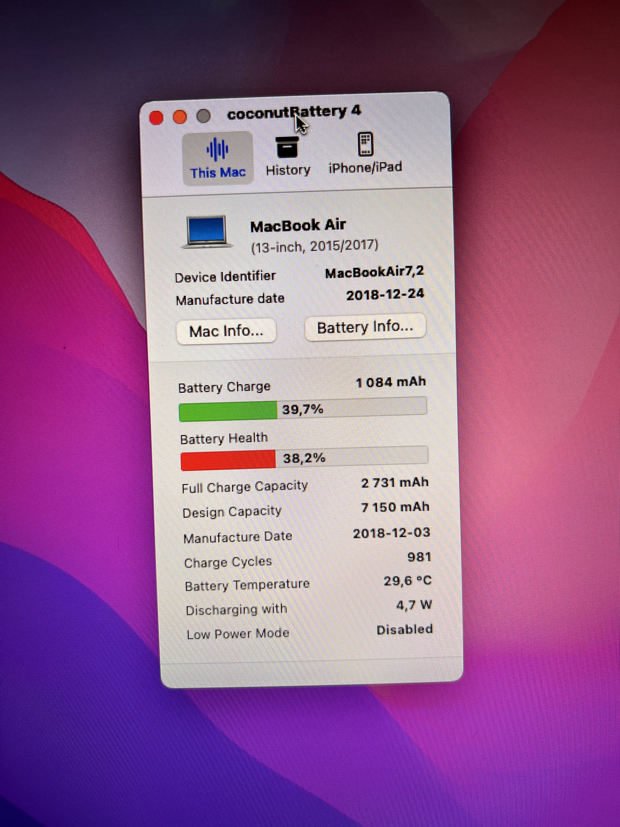 Macbook Air 2017 - használt - akku 38%