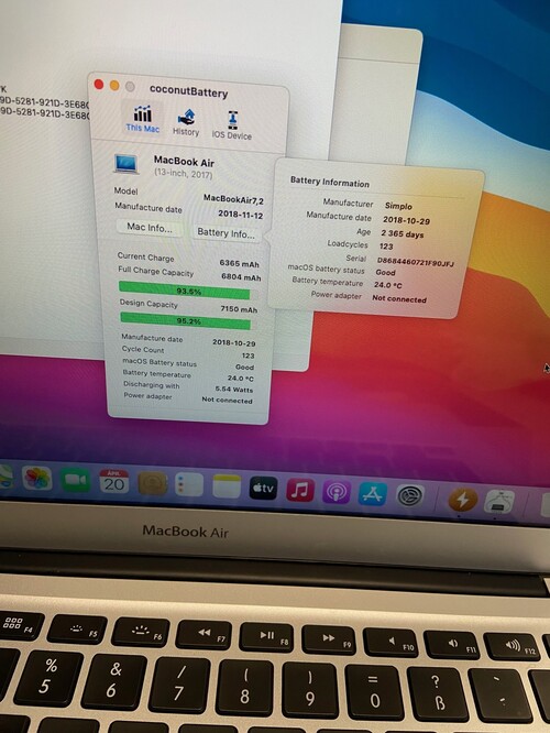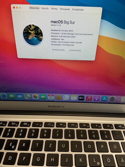Eladó MacBook Air 2017, képen a fontosabb adatok.