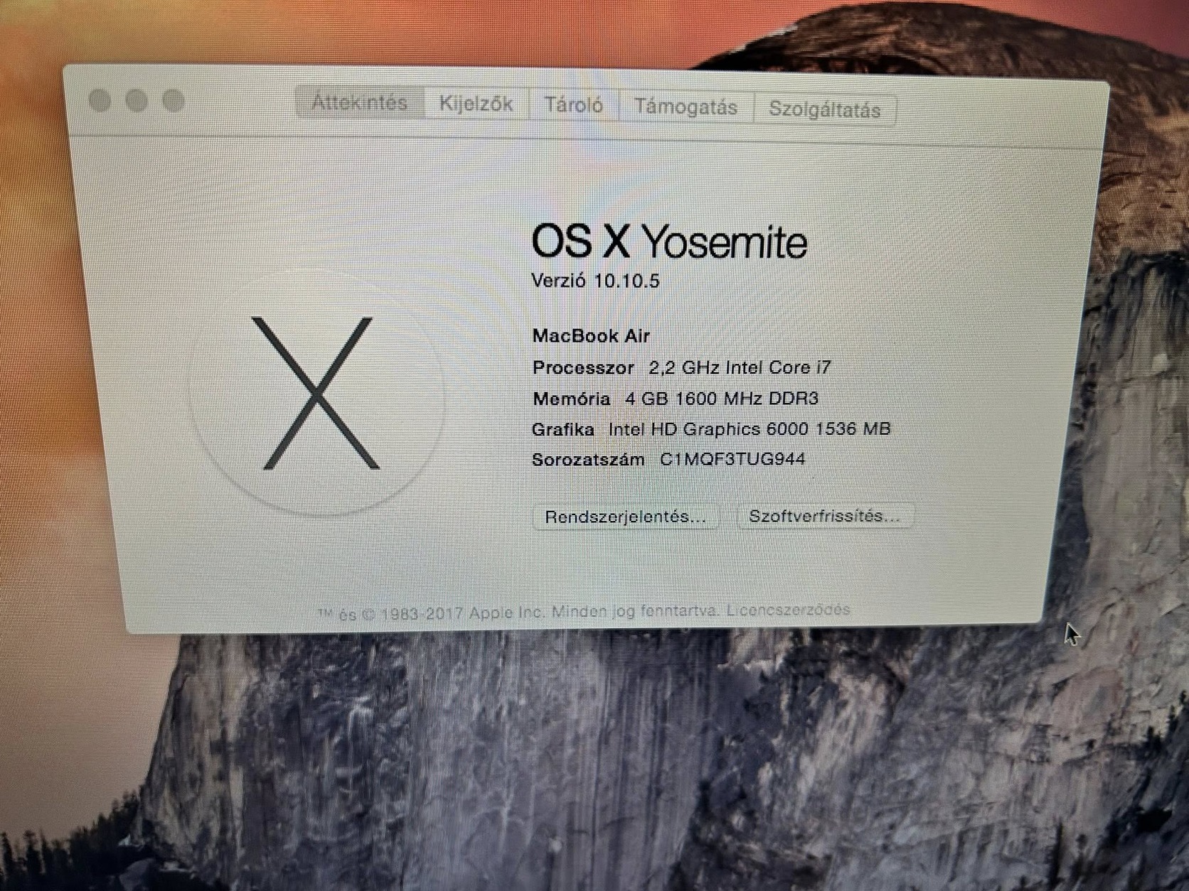 Eladó Macbook Air 13.3”