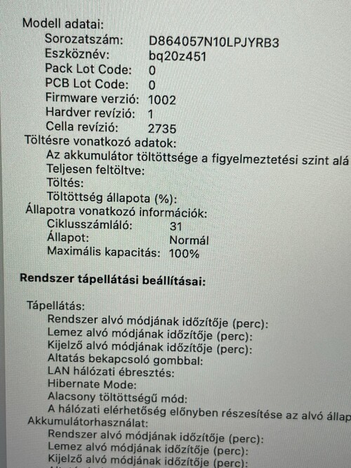 100%-os akkumulátorában összesen 31 töltési ciklus van.