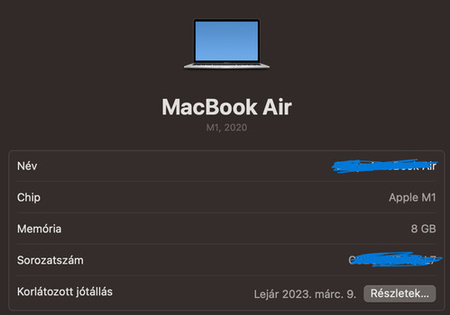 ERTEKELESRE Macbook Air M1 2020 256gb 8gb ram 7core Silver, HU billentyuzet - 2025.03.09-ig garis -