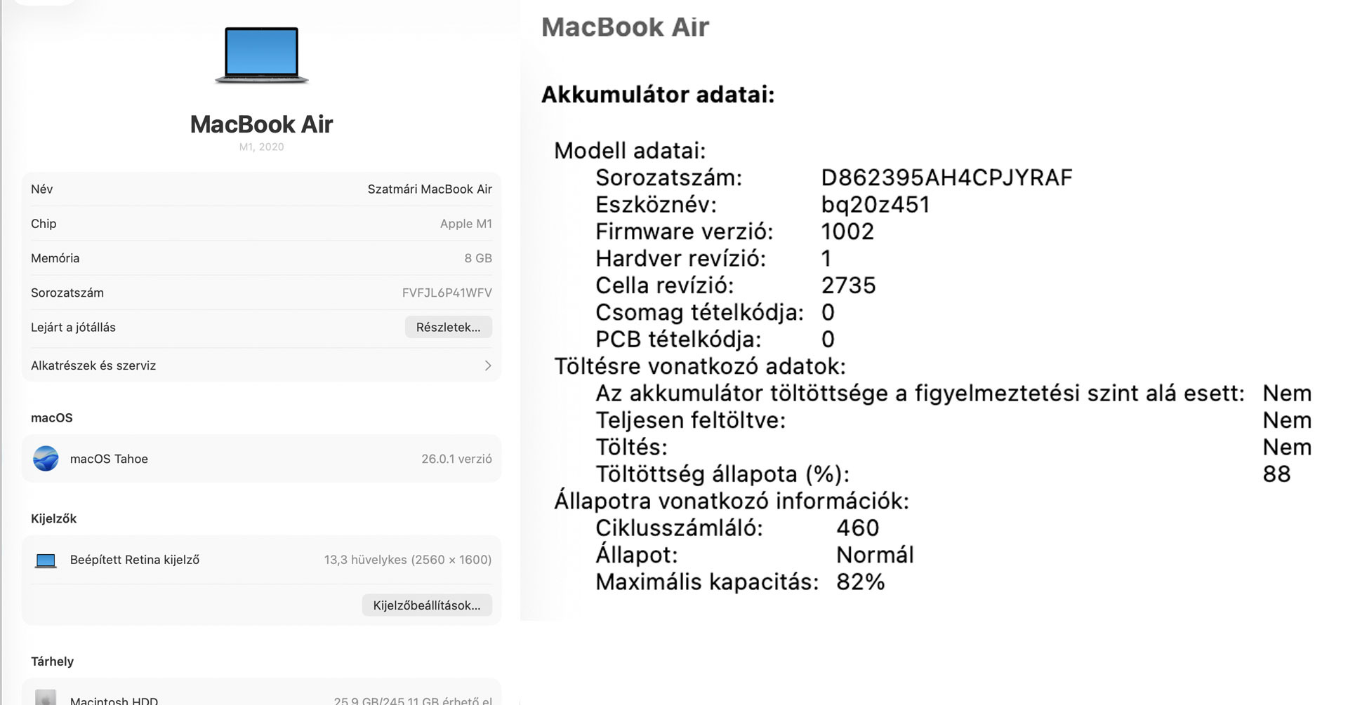 Eladó egy kiváló állapotú MacBook Air M1 13.3" (8 GB RAM / 256 GB SSD) első tulajdonostól.