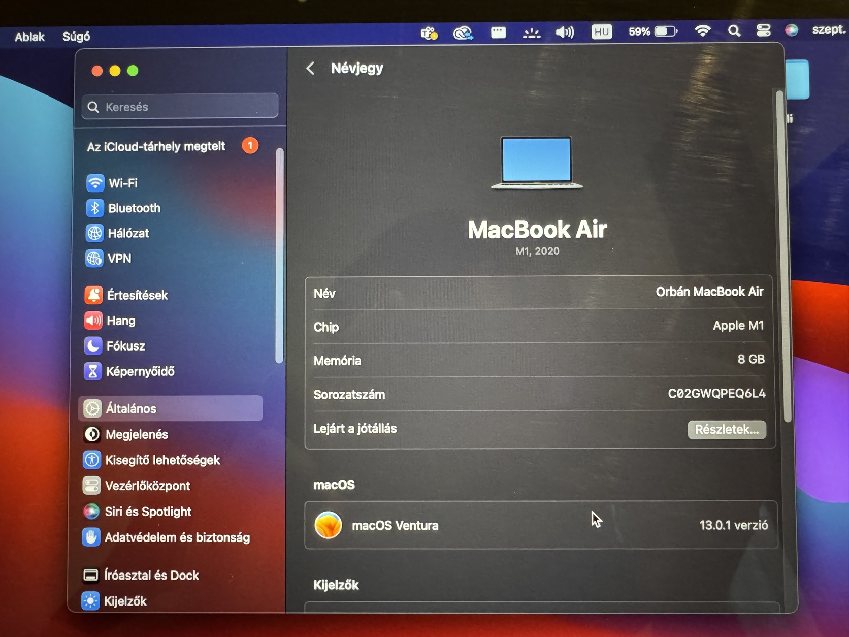 Eladó egy 2021-ben vásárolt Macbook air M1 szép állapotban.