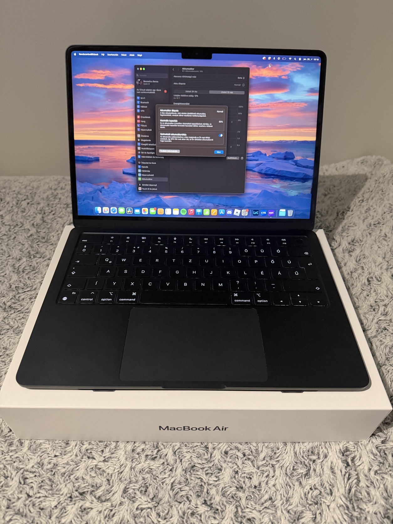 Az akkumlátor 95%-on van, hibátlanul működik.