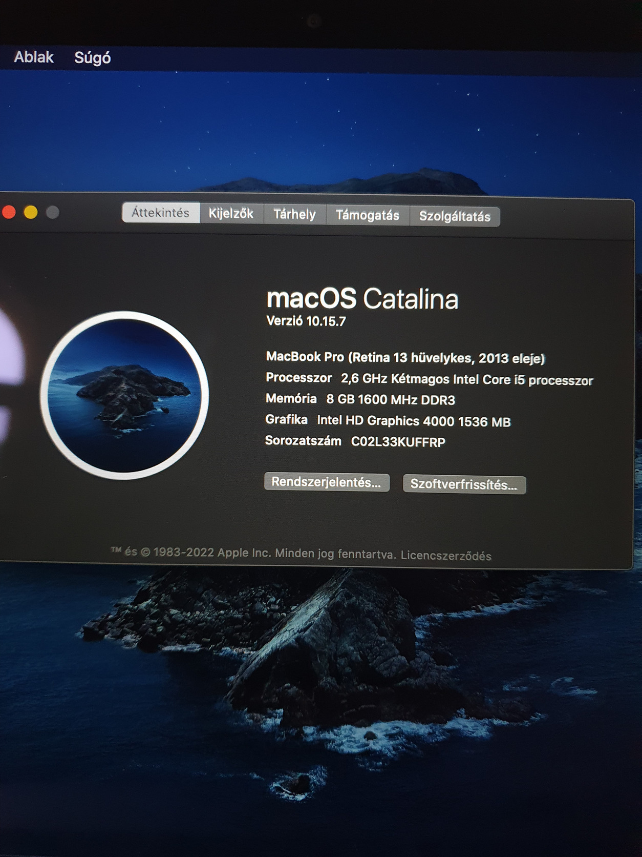 Jelenleg macOS Catalina van rajta.