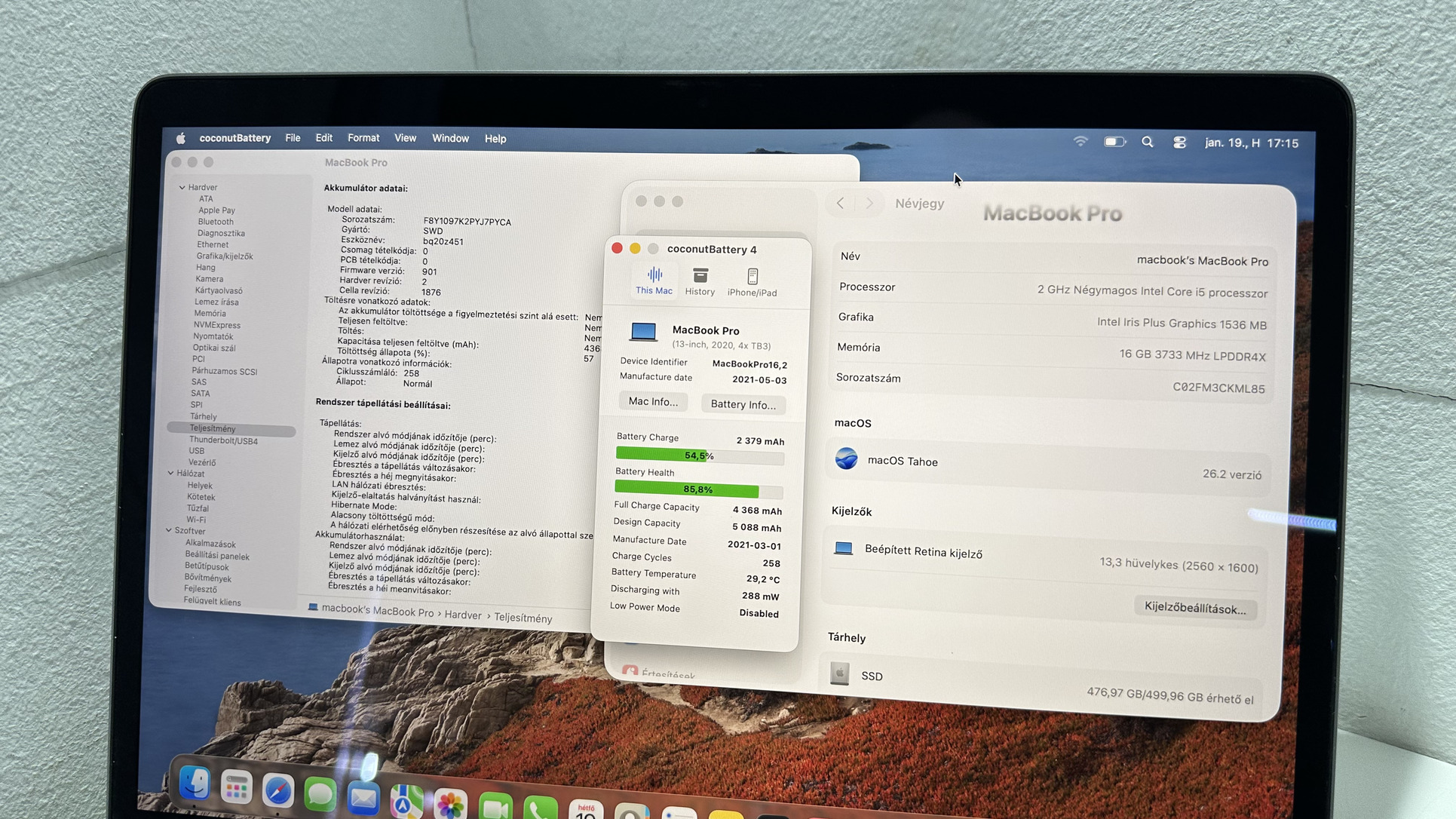 258 ciklus és 85%-os akkuval, tökéletes kapacitás!