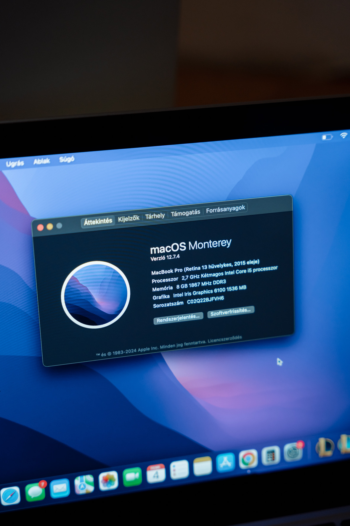 Eladó MacBook Pro 13” (Retina, 2015 eleje). Retina kijelzővel szerelt, megbízható, kompakt gép mindennapi munkára, tanulásra vagy utazáshoz is ideális. Intel Core i5 processzorral készült, gyors SSD tárhellyel, 8 GB memóriával, beépített FaceTime HD kamerával és háttérvilágításos billentyűzettel. Csatlakozók: 2× USB 3.0, 2× Thunderbolt 2, HDMI, SDXC kártyaolvasó, 3,5 mm jack. Wi-Fi és Bluetooth támogatással. Magyar billentyűs.