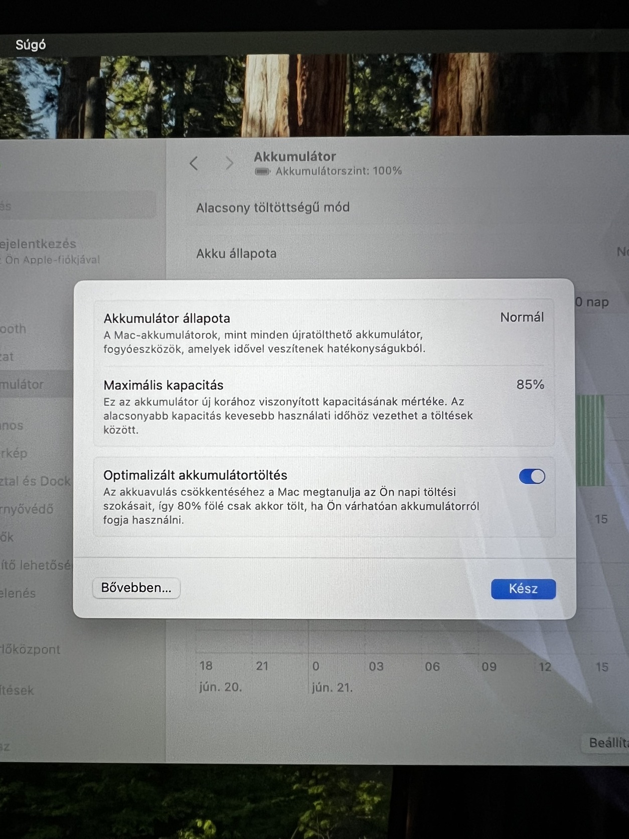 Akkumulátor: 85% (folyamatos hálózati használat miatt)