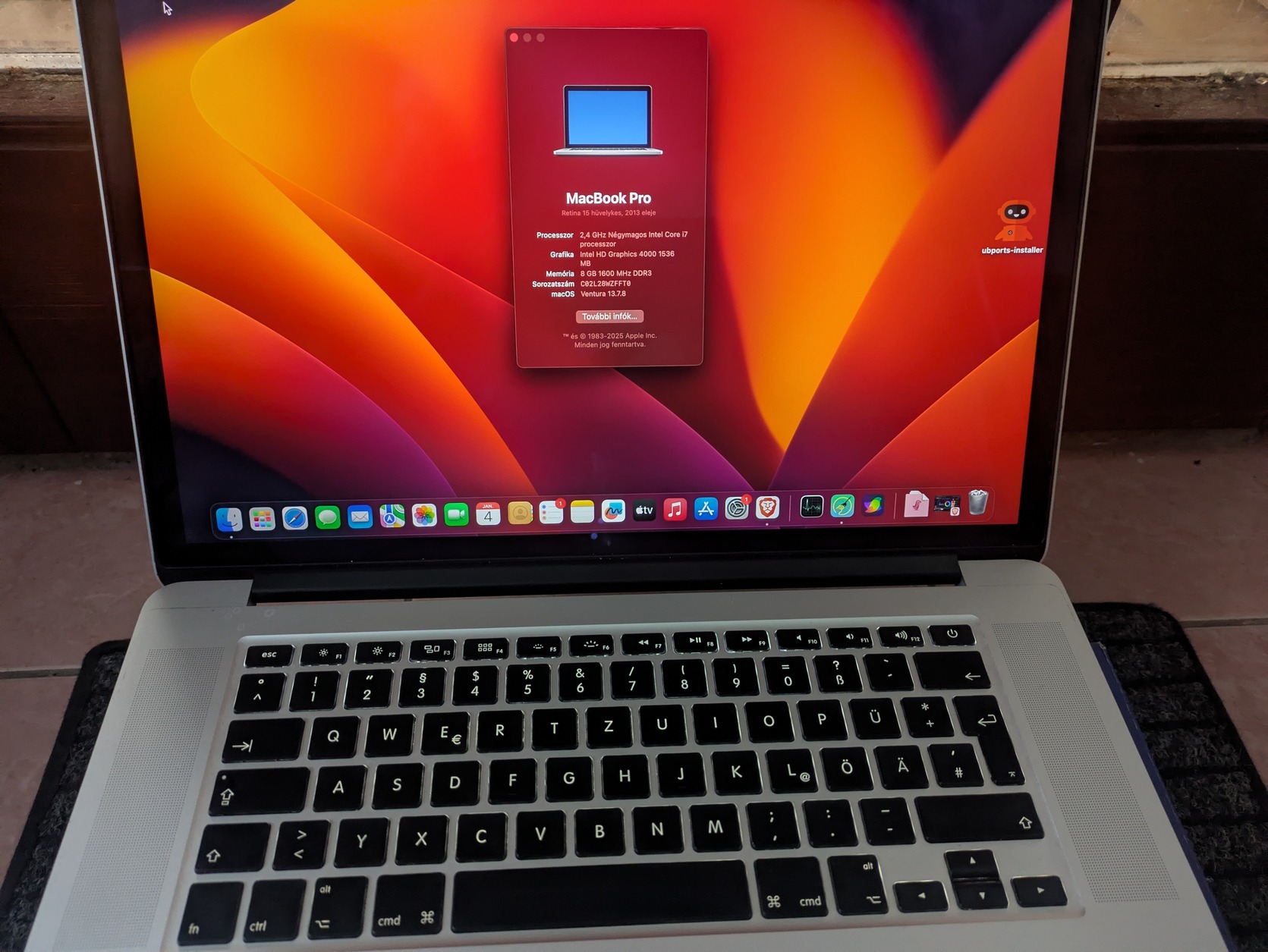 MacBook Pro 15" 2013 early eladó, a képeken látható szép, megkímélt bár nem hibátlan állapotban. Az egyik sarkon, hátul található egy apró sérülés, a működést nem befolyásolja. A kijelzőn egy-két helyen megkopott a matt réteg, de használat közben egyáltalán nem zavaró. Az akku már nincs a legjobb állapotban, de természetesen jár mellé a gyári töltő, egyéb tartozék, doboz nincs.