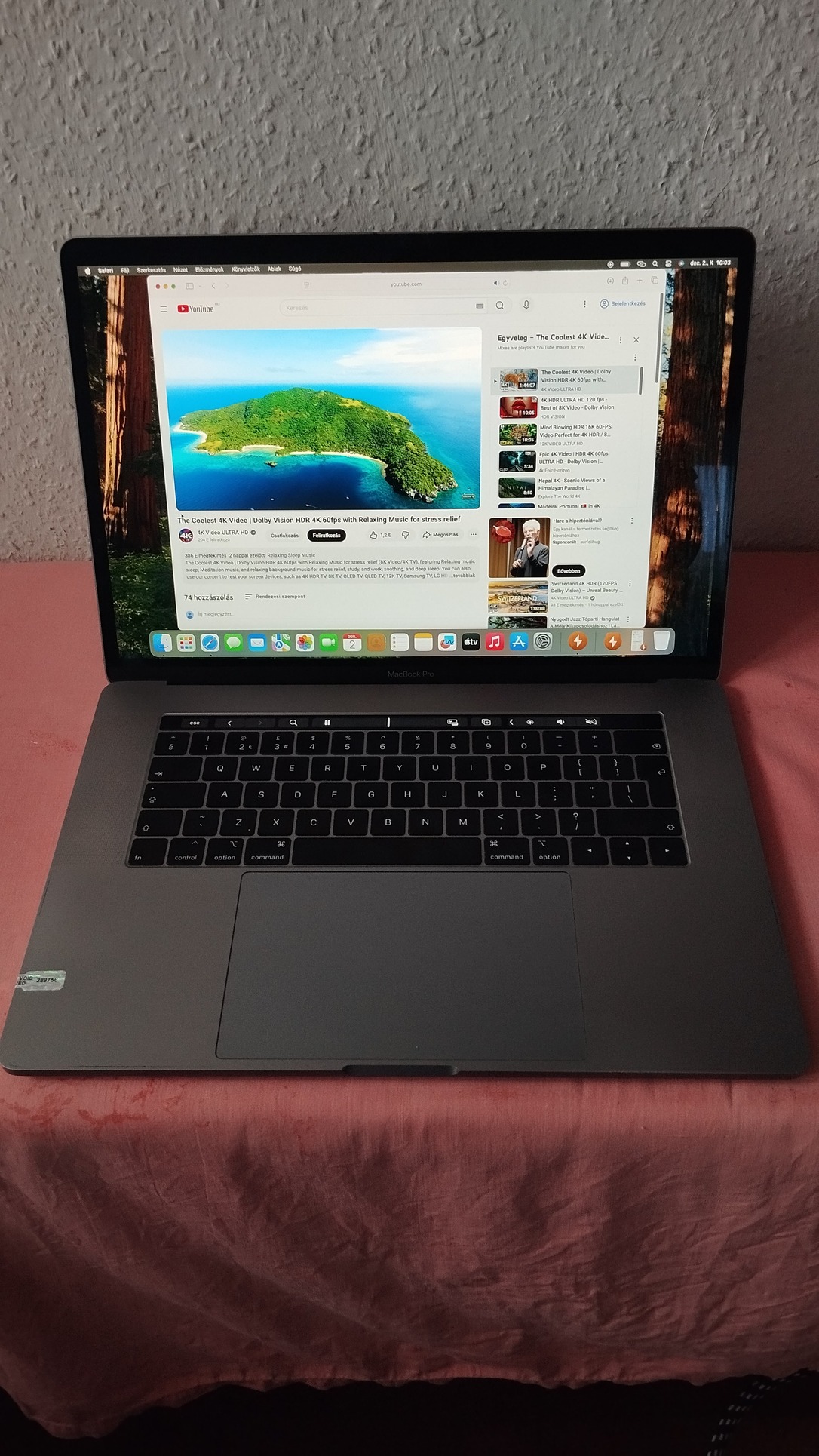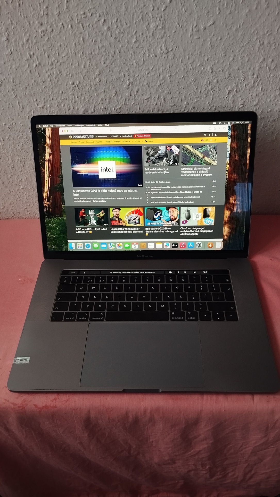 Eladó egy szép és megkímélt állapotú Macbook Pro 15" Retina kijelzős, Radeon 550X videokártyával 2018-es évjáratú asztroszürke színű notebook