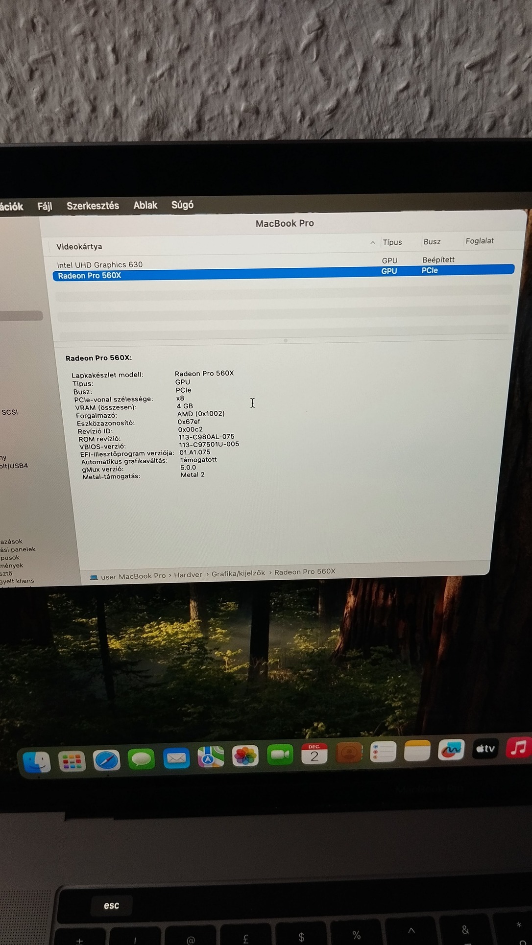 Dual chip-es videokártya (AMD Radeon PRO 560X és Intel UHD 630)