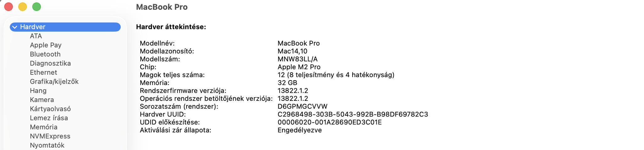 - Apple M2 Pro chip 12 magos CPU‑val, 19 magos GPU‑val