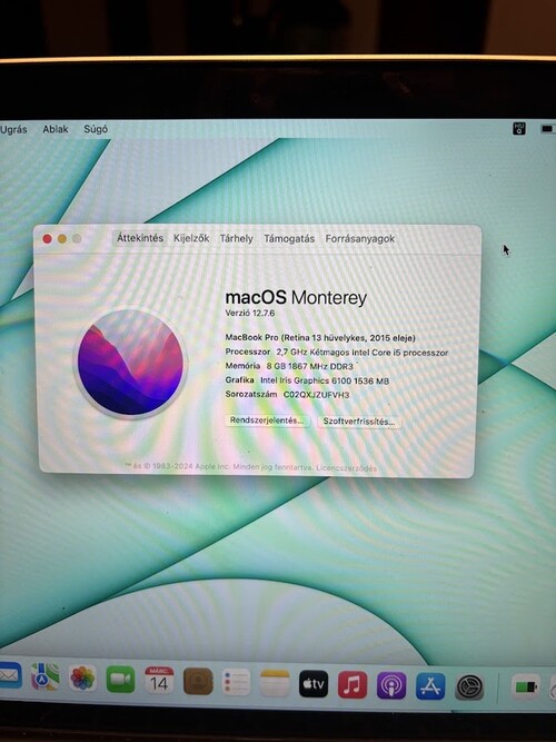 Nagyon szép állapotban akku 90%-os Monterey van rajta, csak töltő kábel van hozzá.