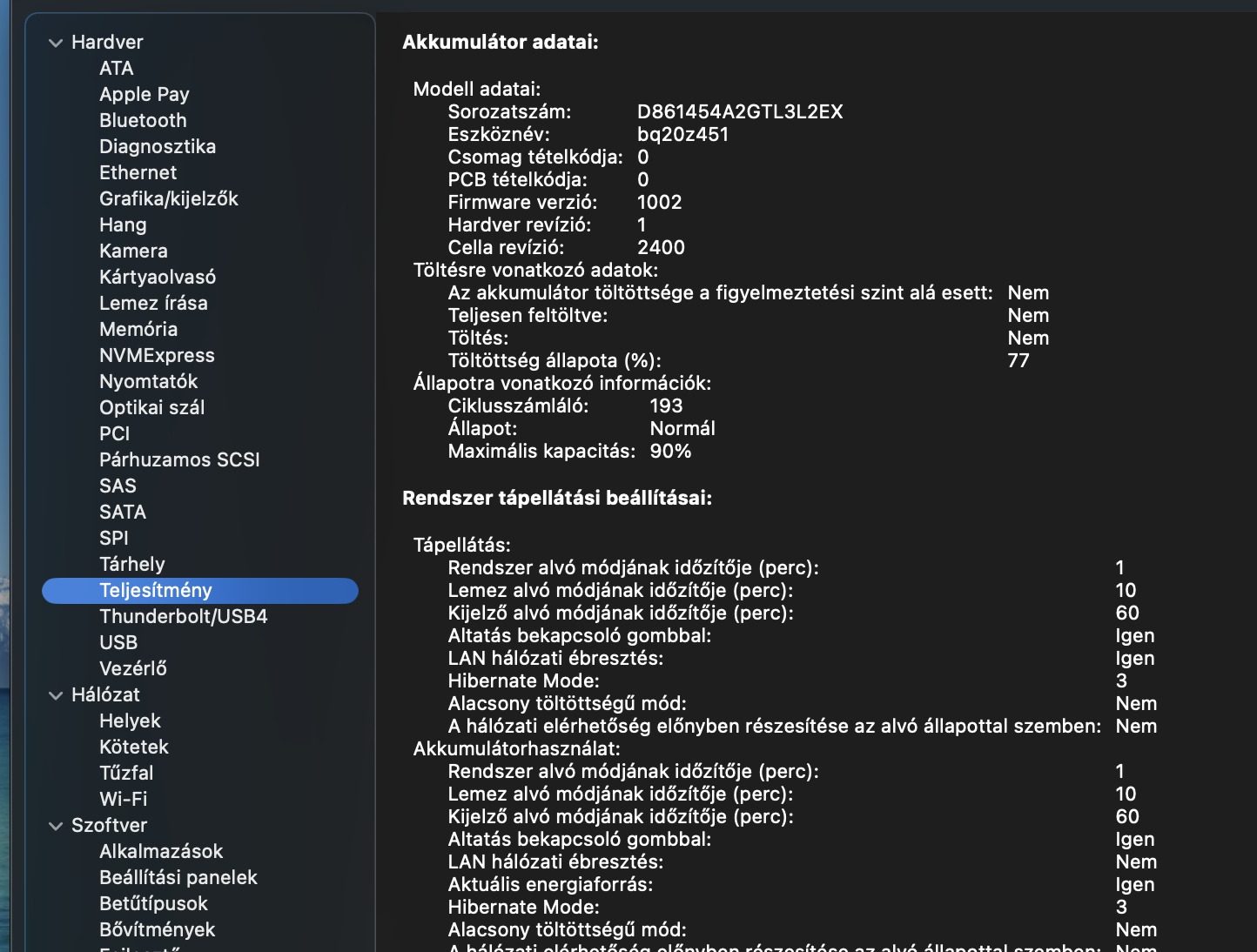 Akku állapot és ciklus szám az egyik képen található.