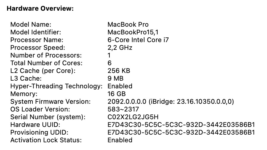 MacBookPro 15" 2018 - A1990