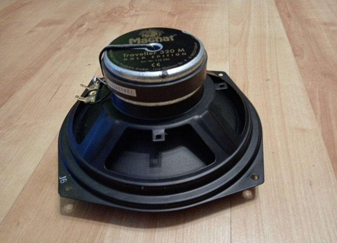Magnat Traveller 320m Gold Edition 20cm átmérő, 180W Max / 90W RMS, 30-24,000 Hz, 4 Ohm, 91dB. Acélkosárral ezüstözött csatlakozókkal, tiszta hangzás mély basszus, hiba mentes.