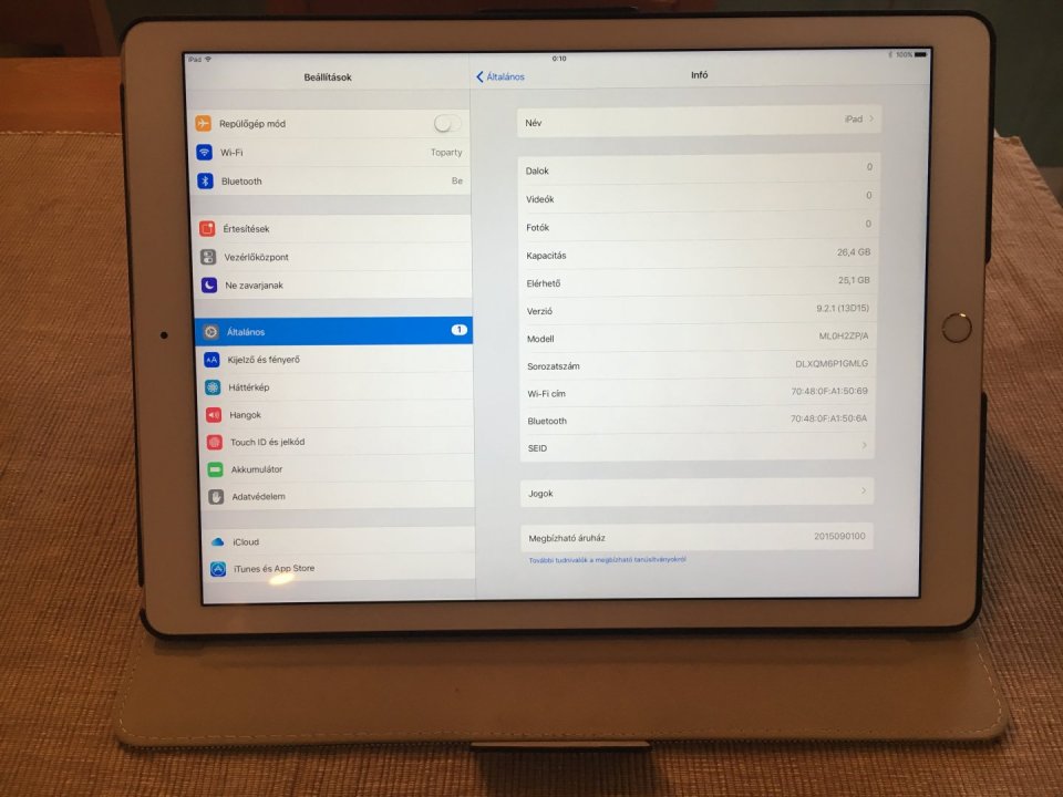 Eladó a képeken látható 12,9"-os arany színű Apple iPad Pro wi-fi, 32GB-os készülékem!