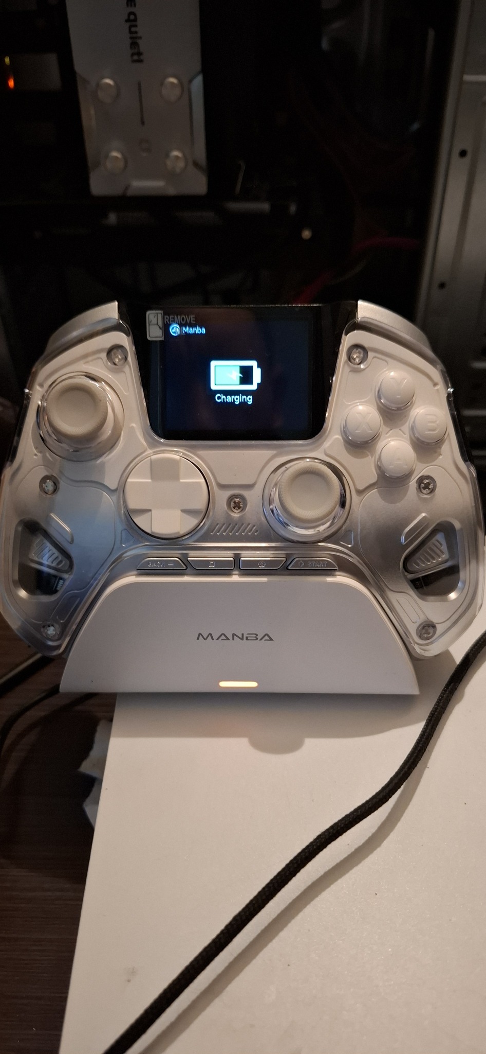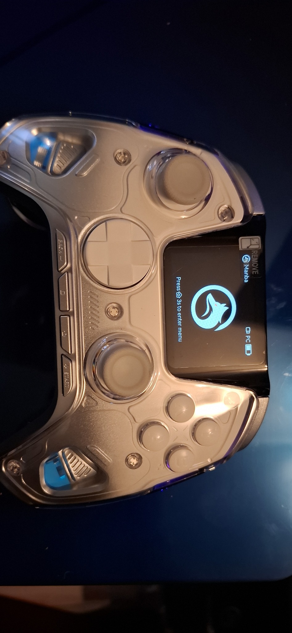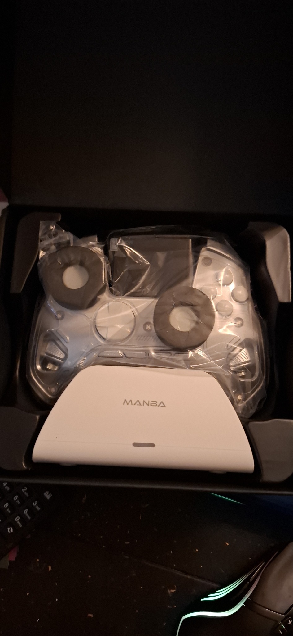 új Manba One RGB wireless controller. Usb stick, Bluetooth csatlakozás, hall effect stickek, alul programozható gombok, állítható trigger, RGB szalag, kijelző, töltő/dokkoló állomás, 1800 mAh akkumulátor.