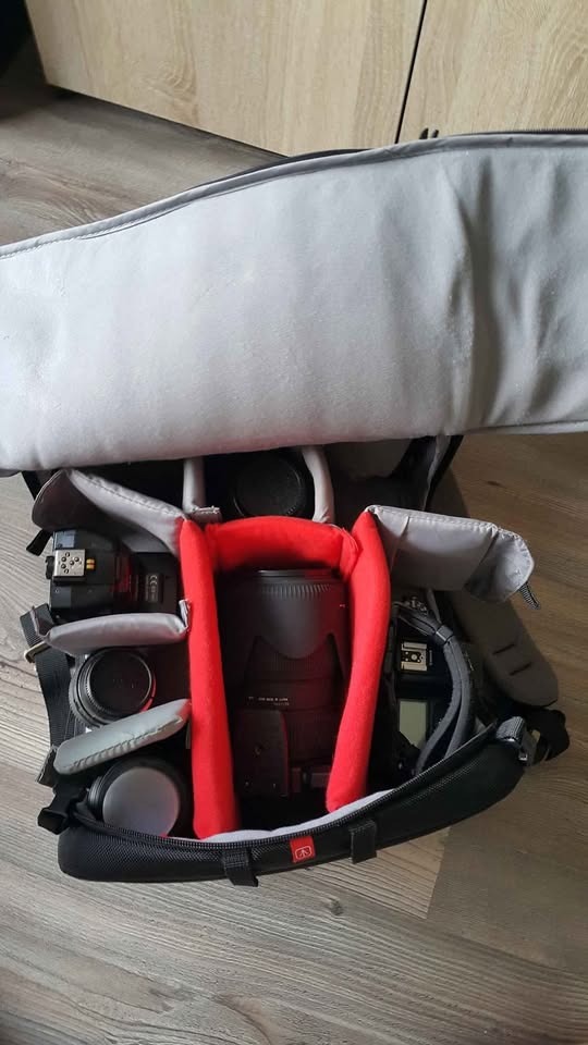 Kihasználatlanság miatt eladó egy Manfrotto Tri Hátizsák L (MB MA-BP-TL). Képen látható szép állapotban. Nem szakadt, nem kopott, nem koszos. L-es méret, ebből a típusból a legnagyobb. Belső méret: 29 x 18 x 44 cm, külső méret: 33 x 26 x 46 cm. Rengeteg cucc fér bele, 1-2 váz, 5-7 objektív. Külön felső tároló rekesz az apróságoknak. Van kialakított laptop tartó rész is (29 x 4 x 44 cm). Sok rekesz elválasztóval testre lehet szabni. Gyári esővédő huzat. Budapesten átvehető.