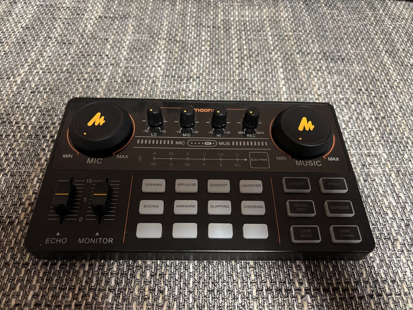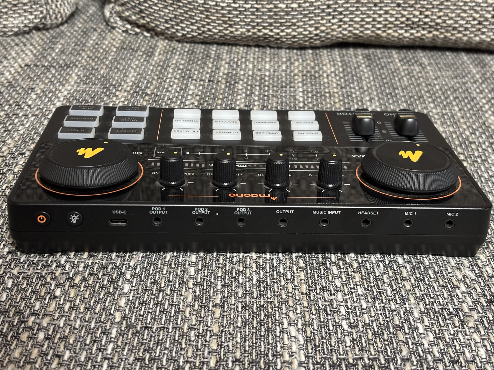 Tizenkét hanghatás áll rendelkezésre, amelyek közül négy programozható. Van egy Pitch gomb is, amellyel hangját például robottá vagy ellenkező neművé változtathatja, valamint egy Denoise gomb, amely fejlett algoritmusok segítségével elnyomhatja a nem kívánt környezeti zajokat. Livestreamek esetén értékelni fogja például az Oldallánc opciót, amely elnémítja a háttérzenét, és kiemeli az emberi hangot.