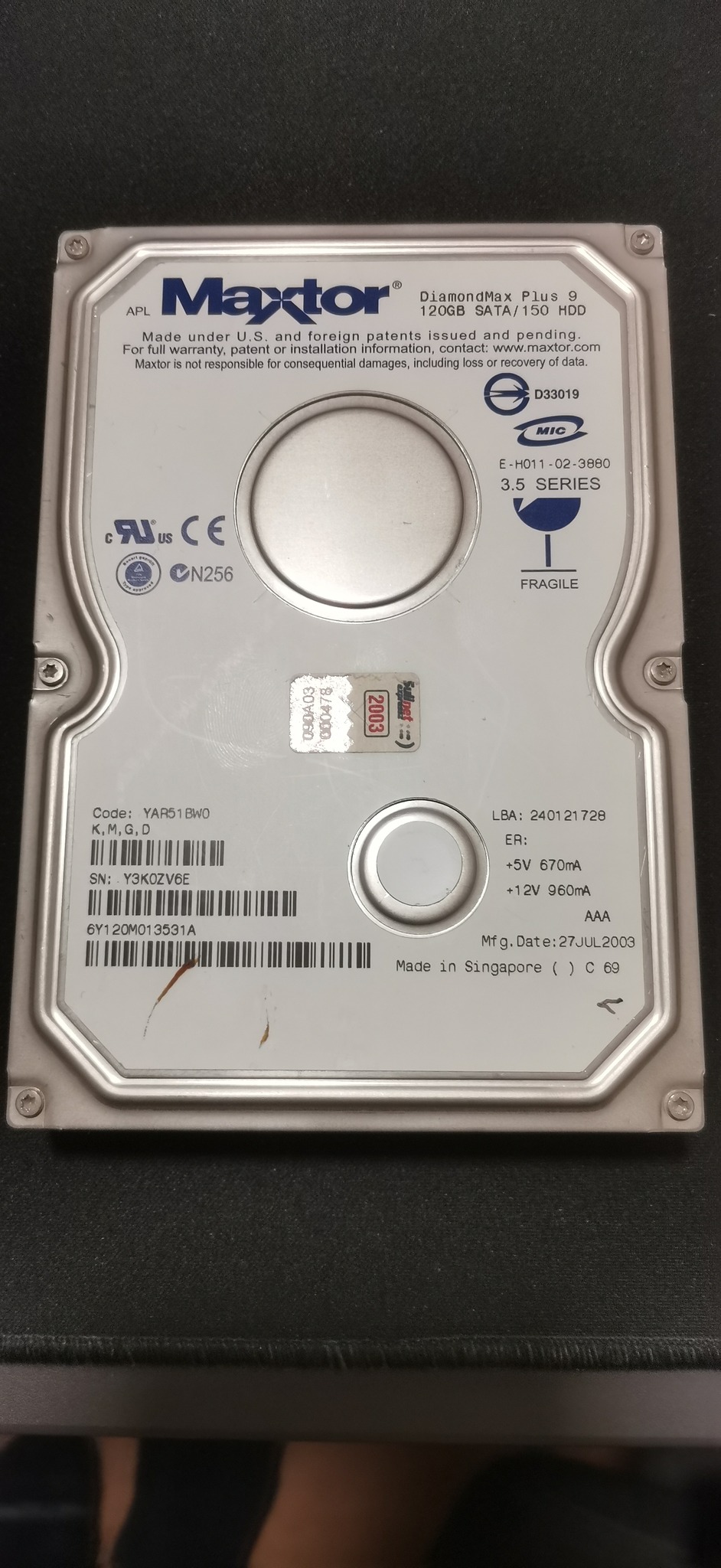 Maxtor 120GB SATA 3.5" 100%