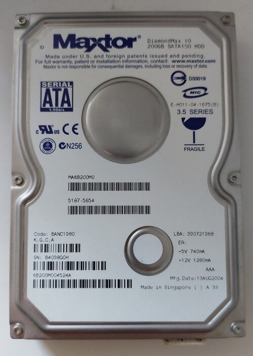 Maxtor 200 GB SATA HDD