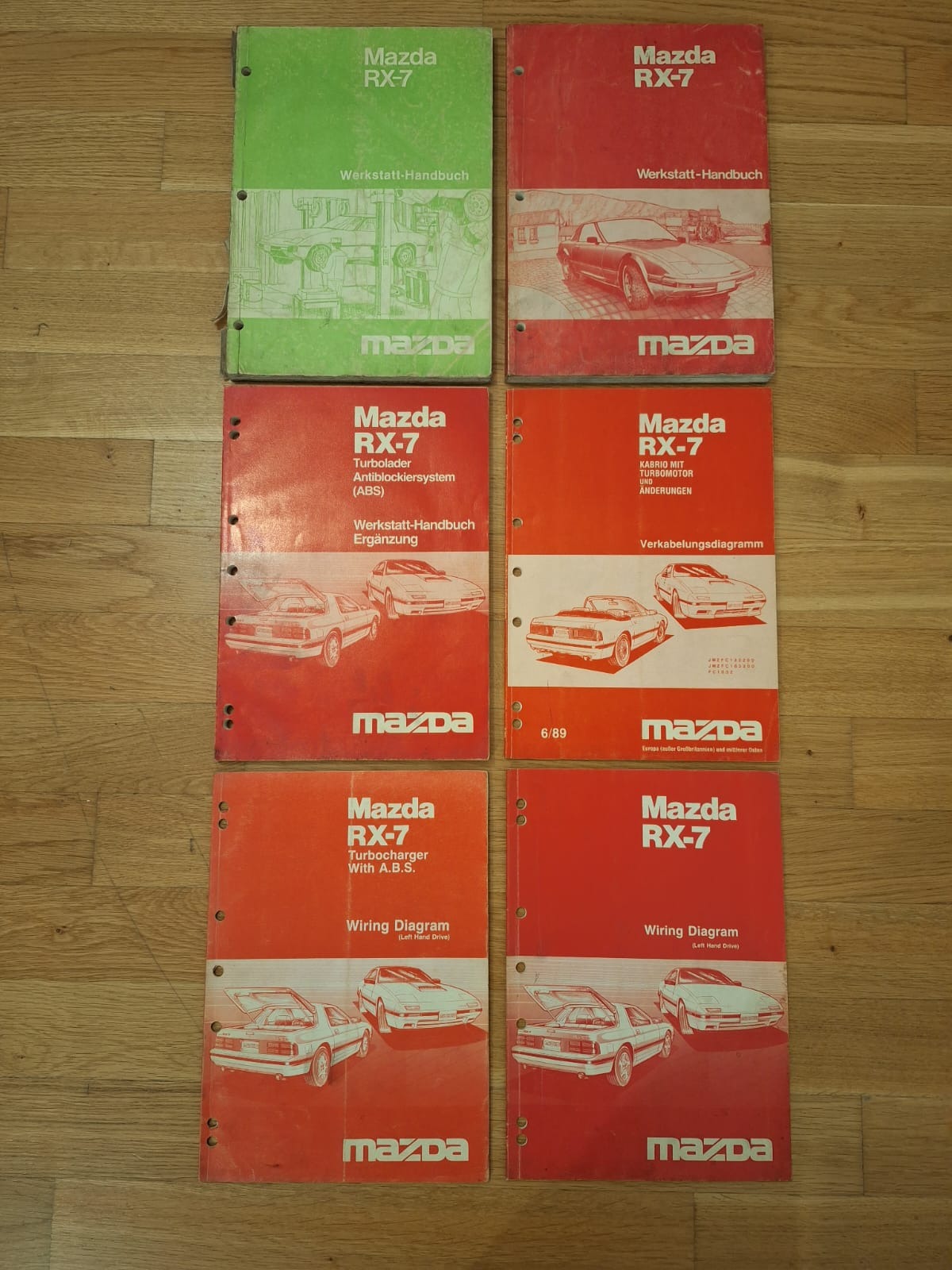 Eladó 6db gyári szerelési kézikönyv / szervízkönyv RX-7 SA ill. FC-hez német és angol nyelven (nyomtatva 1979-től 1989-ig).