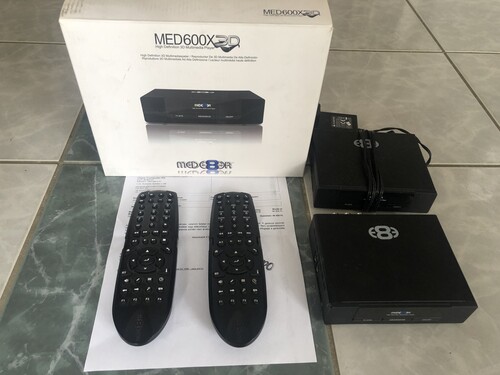 Eladnám a képen látható 2 db Mede8er mediaboxot. Az egyiket dobozában vettem használtan néhány éve, a másikat doboz nélkül. Mindkettő hibátlan.A távirányítók közül az egyik makulátlan - a másiknak az egyik oldalsó gombja beragad./Nem árképző a második egység, sajnálnám kidobni/