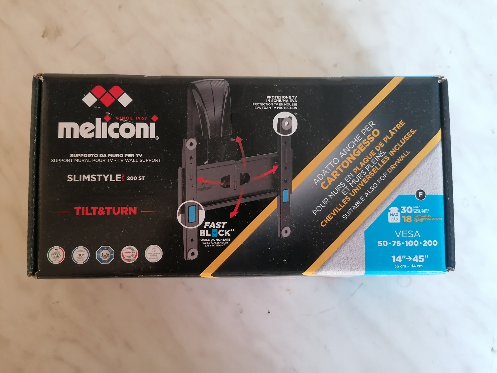 Meliconi SlimStyle Plus 200ST Fali konzol VESA 50-75-100-200 Dönthető, forgatható. Új ár 12 ezer