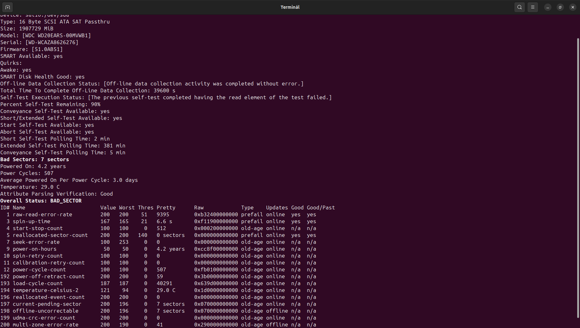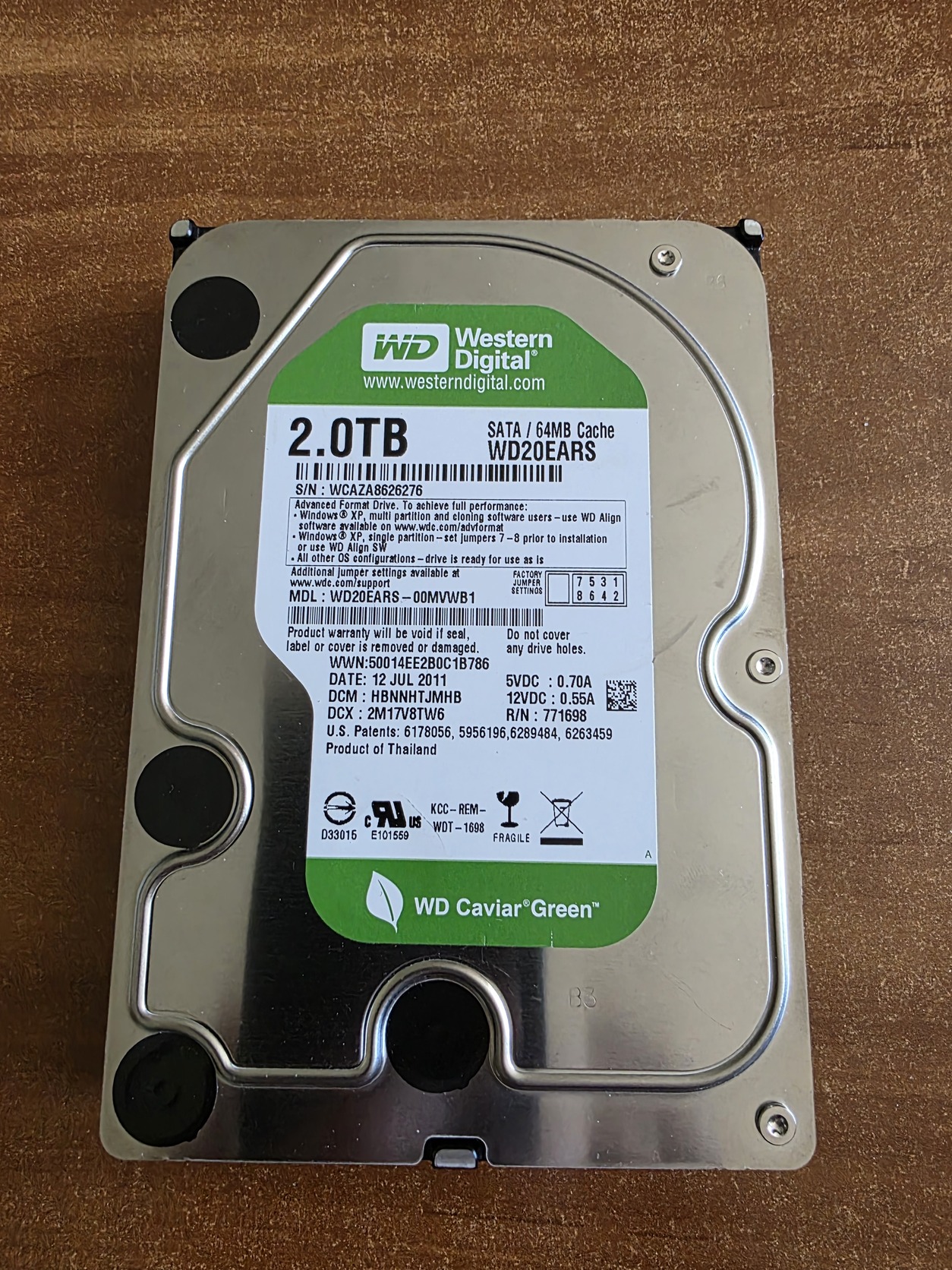 Jegelve – Merevlemez - Western Digital - 2TB - WD20EARS (Szektorhibás: 7 hibás szektor)