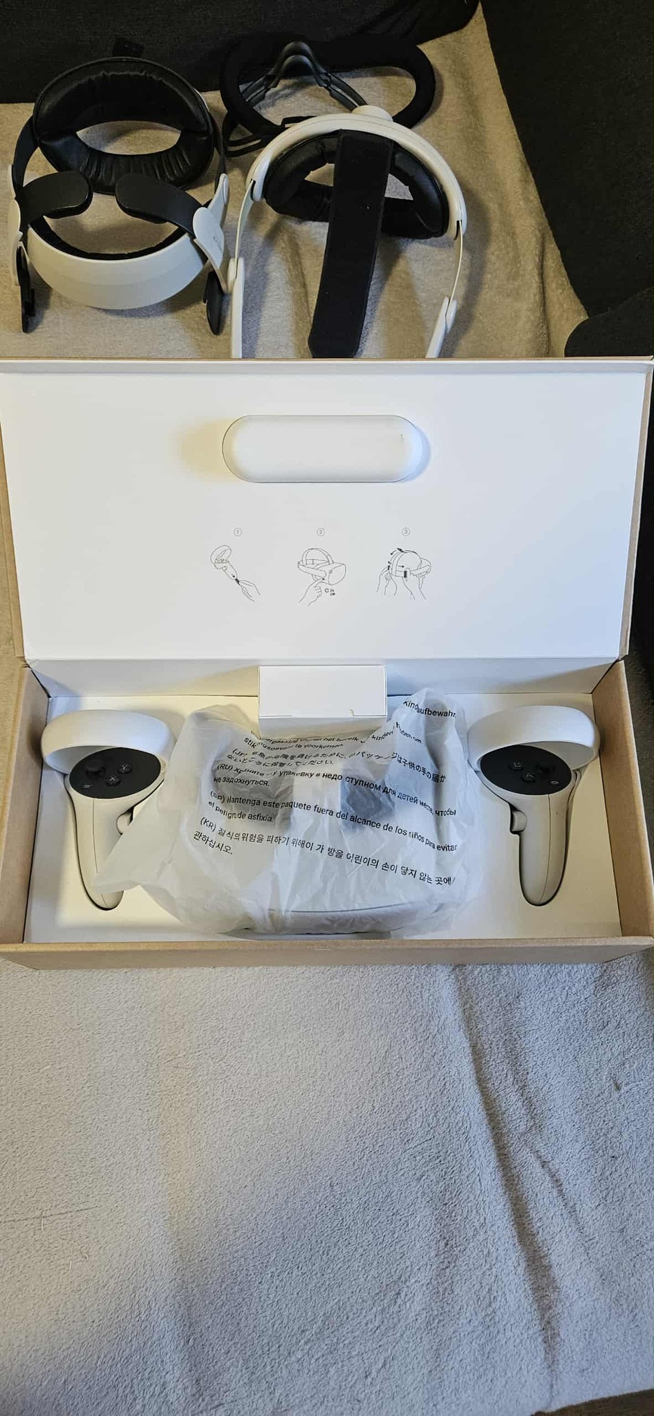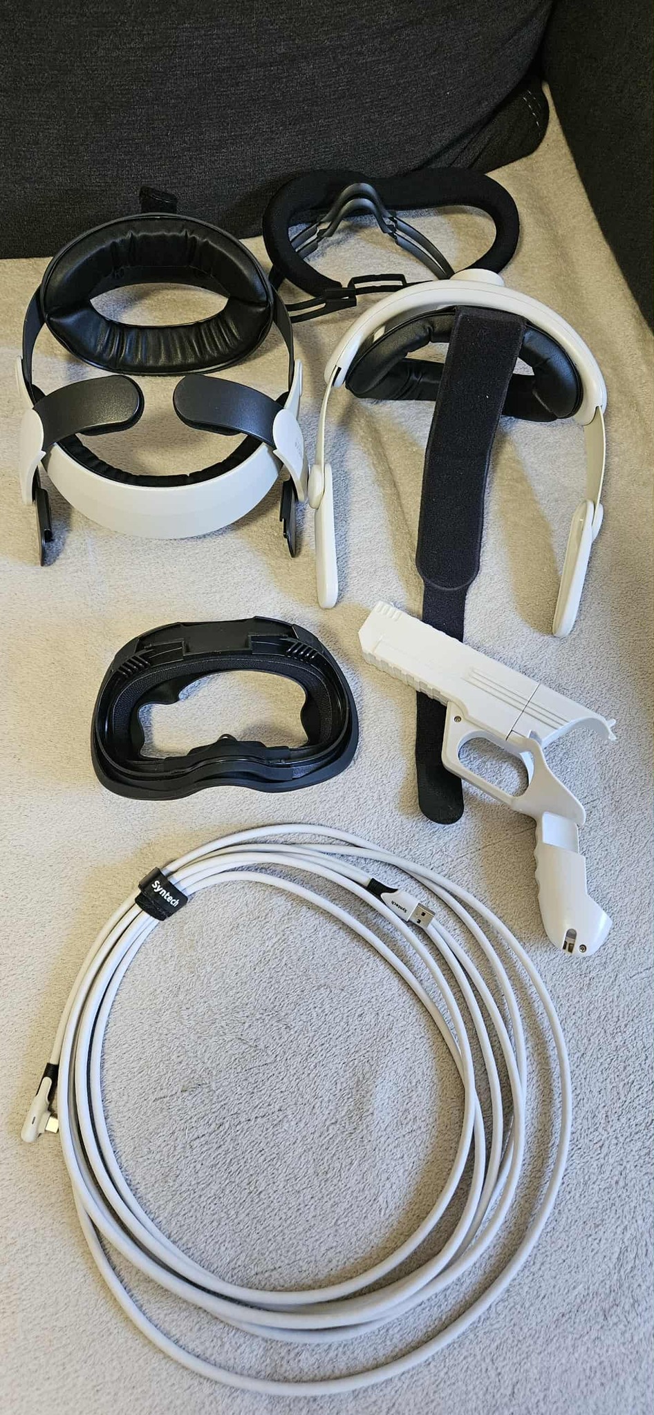 Eladó Meta Quest 2 128Gb-os vr headset. 2db extra fejpánttal, szemüveg eltartóval, extra párnákkal, pc-hez való kábellel, kontroller tartó pisztollyal, gyári töltő adapterrel.