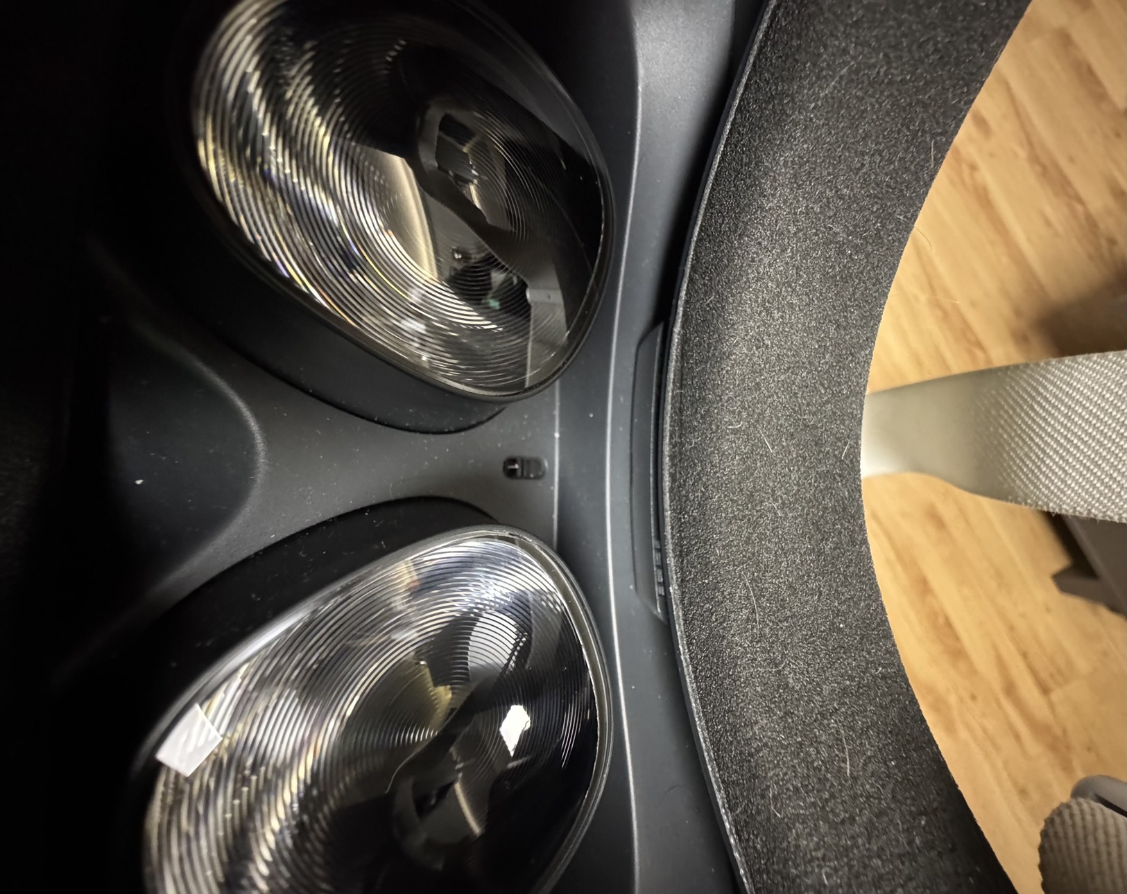 A pánt kicsit megsárgult, illetve a szemüveg távtartó műanyag eltört, így kaptam sajnos, de ugyanúgy működik mintha egyben lenne.