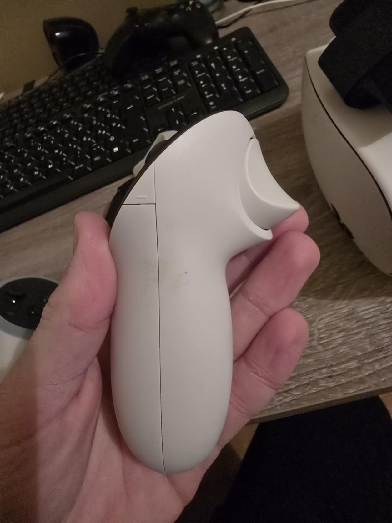 Eladó kihasználatlanság miatt Meta Quest 3S. Mióta nálam van, ezzel a fejpánttal használtam + vettem a kontrollerekre is borítást.(Az egyik kontrolleren van egy kisebb "kosz",hozzám is így került, képet csatoltam) Csak személyes átvétel kipróbálás után, helyileg Kiskunfélegyháza.)