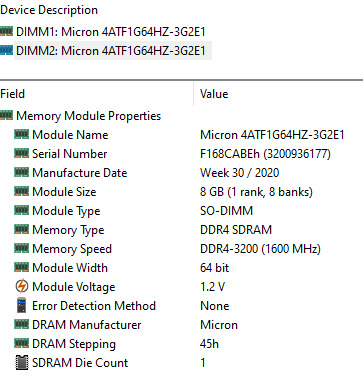 Micron 16GB (2x8GB) DDR4-3200 SO-DIMM RAM (4ATF1G64HZ-3G2E01)