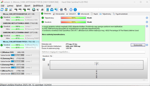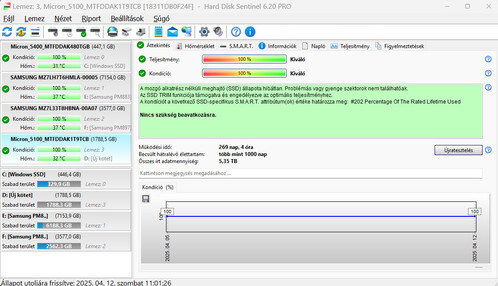 Tartóssága 17.600TB írt bájt (5.35TB és 1.93TB írás van most bennük) azaz új SSD-k.