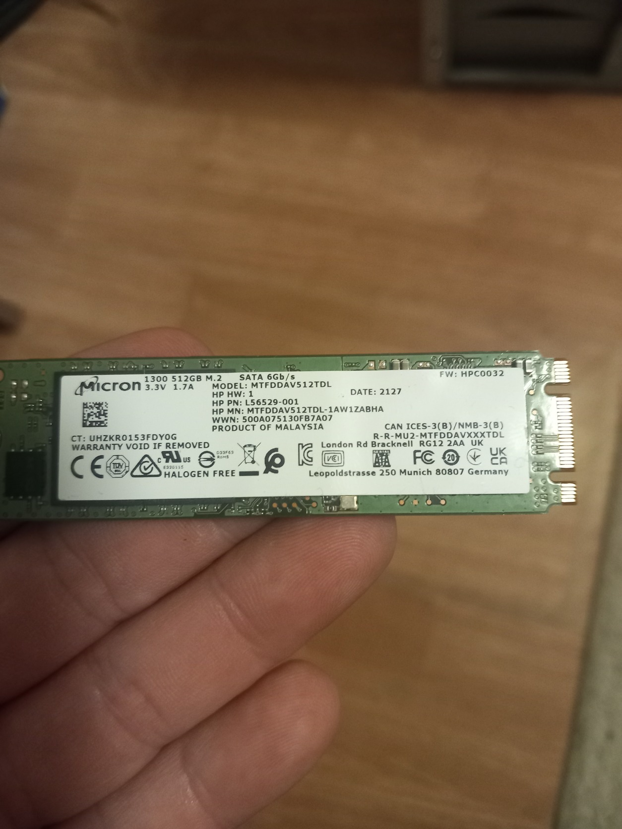 Eladó egy hibátlan állapotú, Micron 1300 típusú, 512GB-os ssd. M.2.