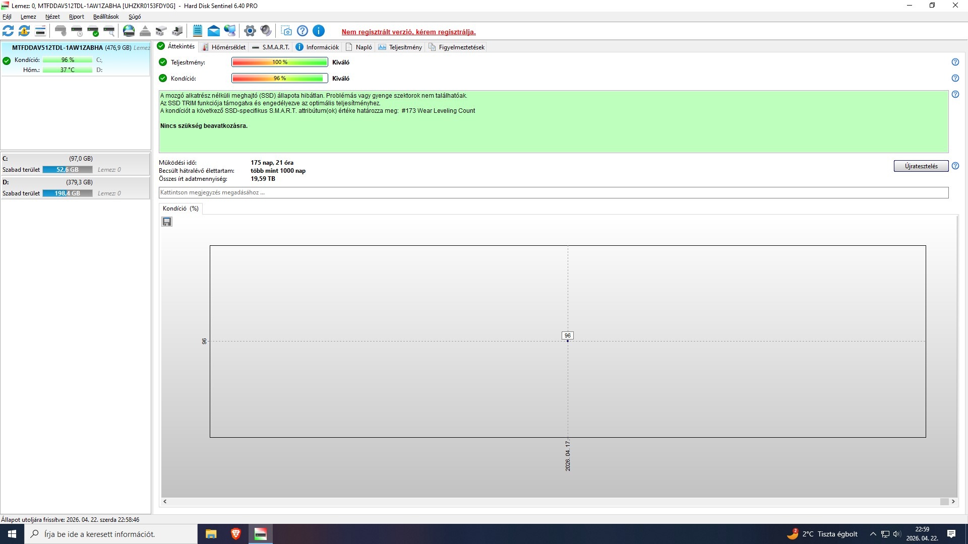 Micron 1300 512GB M.2 SSD - 96% kondíció