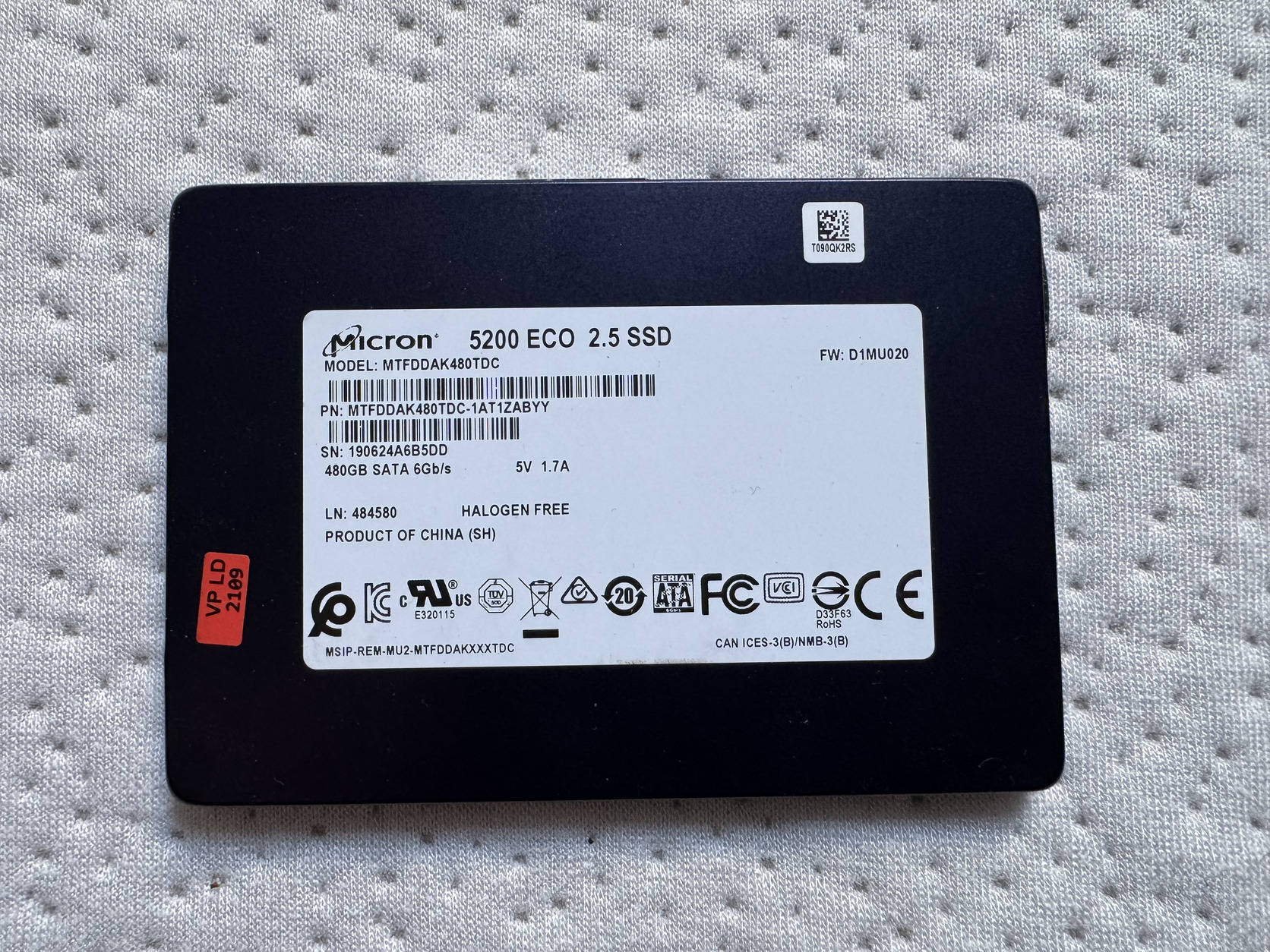 Micron 5200 ECO 2,5 SATA Enetrprise/Datacenter SSD 480 GB 29/29 db